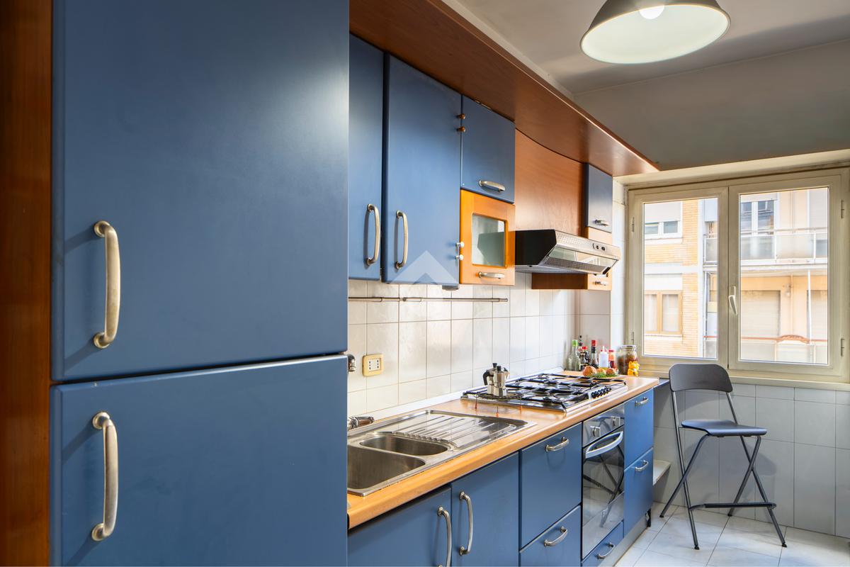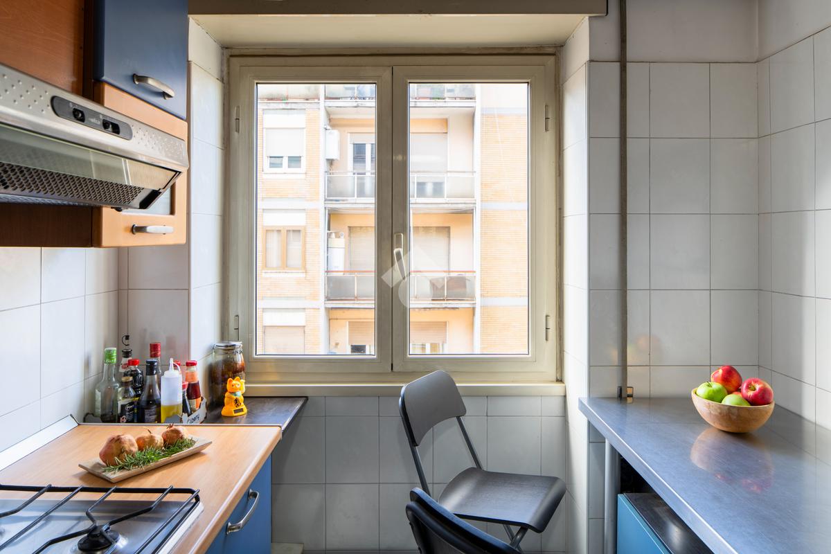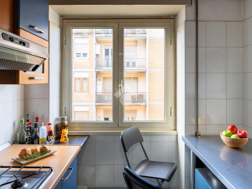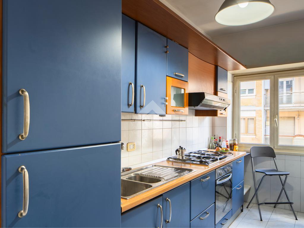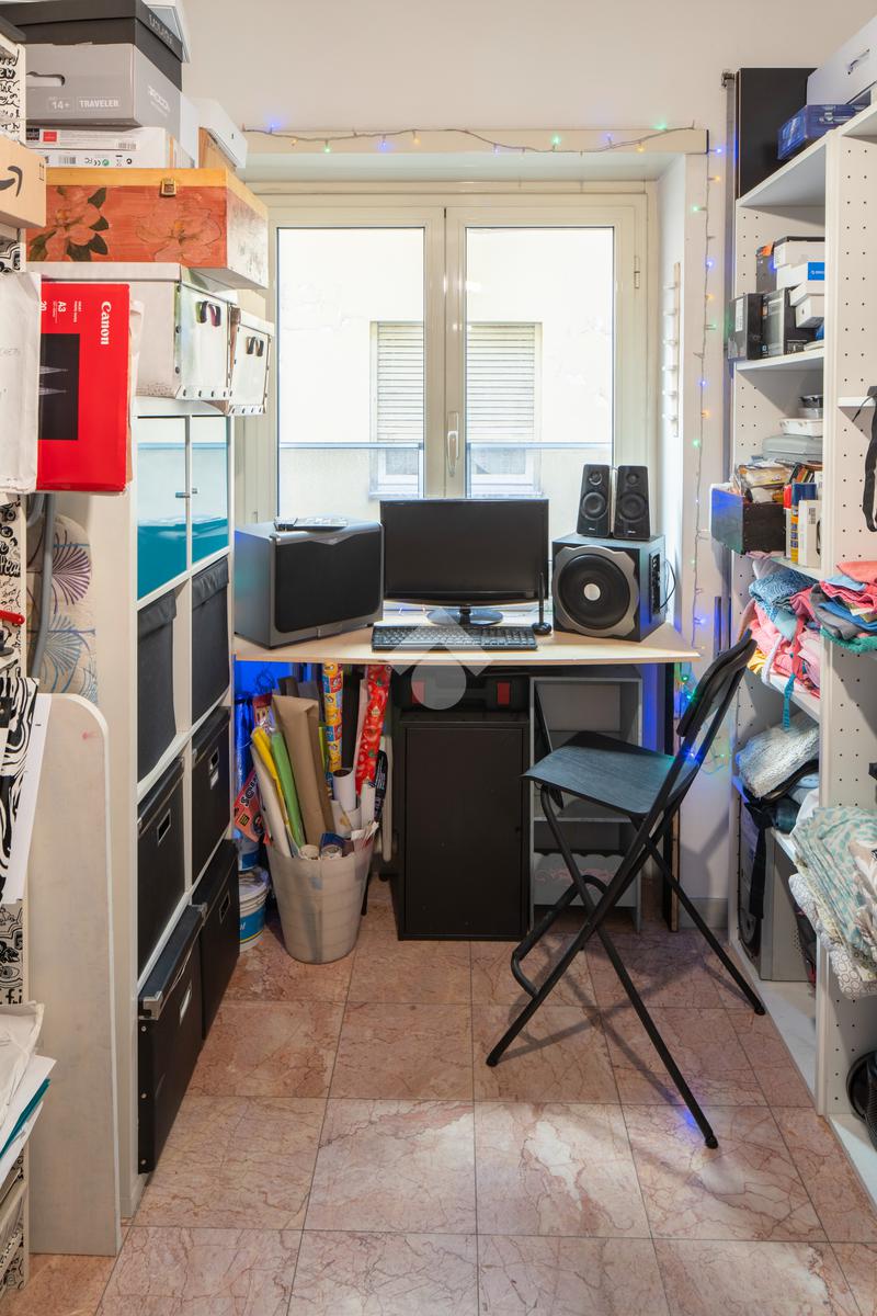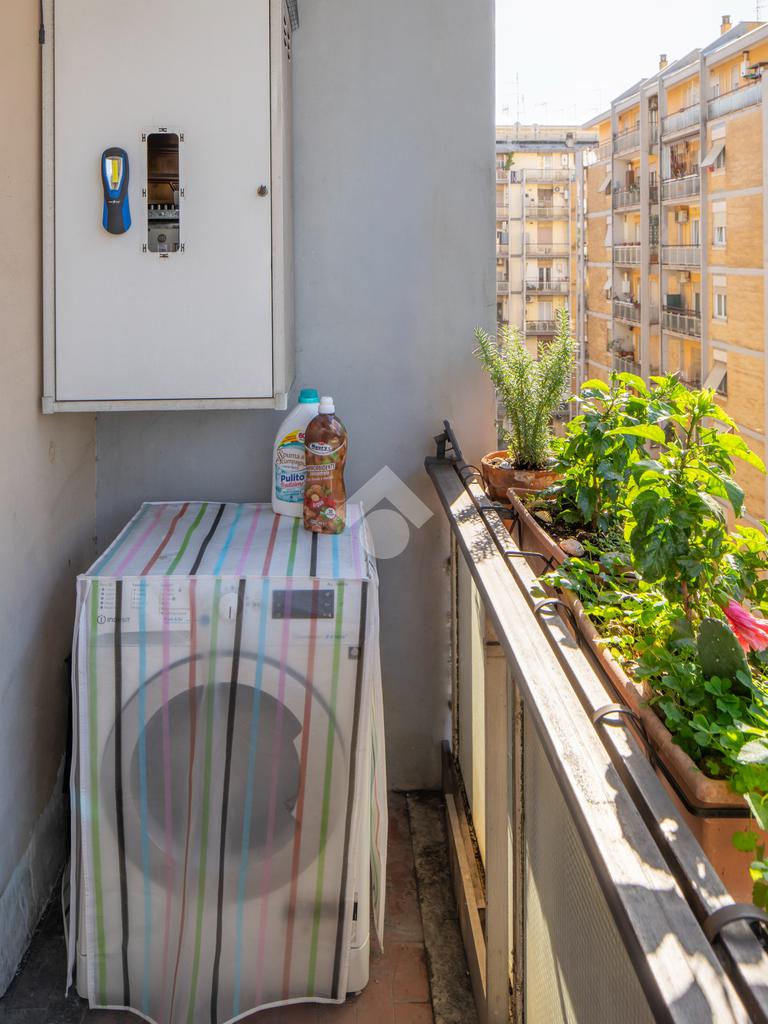 Soggiorno a vista, tre ampie camere, cucina abitabile, doppi servizi e balcone. Inoltre l'immobile presenta un ampio ripostiglio finestrato che si può destinare ad un comodo studiolo.